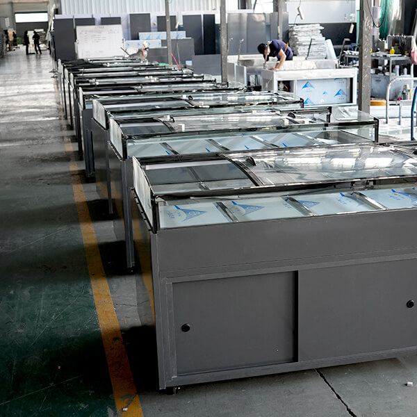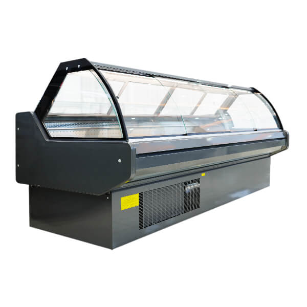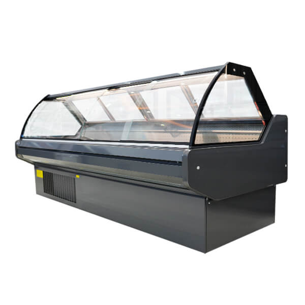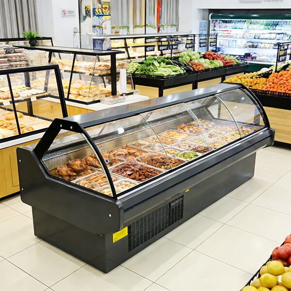 With its curved glass structure, large display area, and stable refrigeration system, this unit helps supermarkets and food stores present fresh meat, cooked food, and deli products in an organized and attractive way.