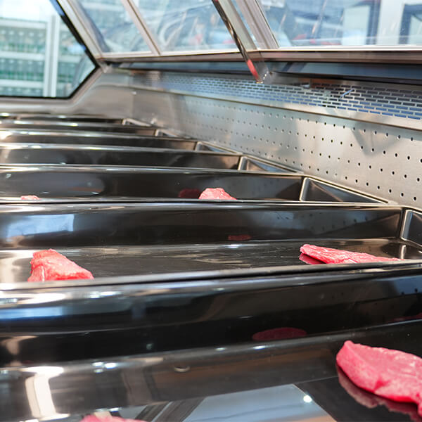 It is suitable for fresh meat, deli products, prepared foods, cooked meat, and other chilled food items used in supermarkets and food retail stores