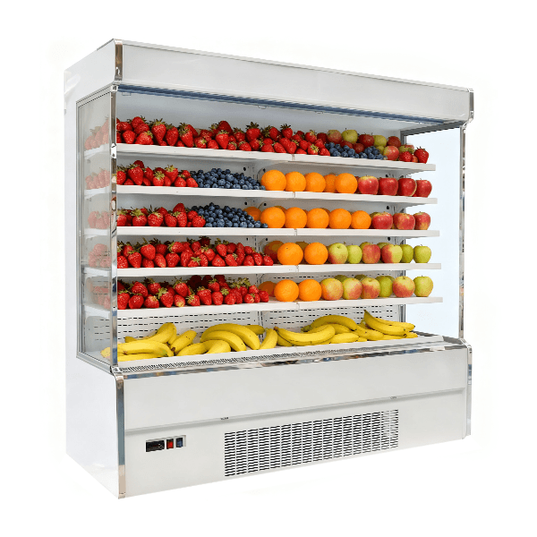 Our open chillers maintain a stable temperature range suitable for fresh food display, with uniform airflow to ensure consistent cooling across all shelves.