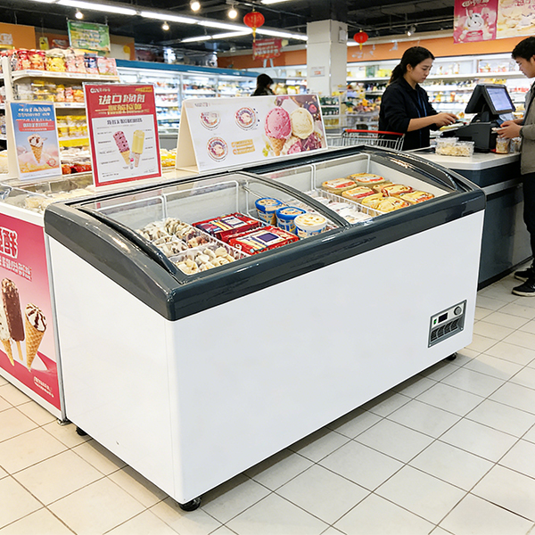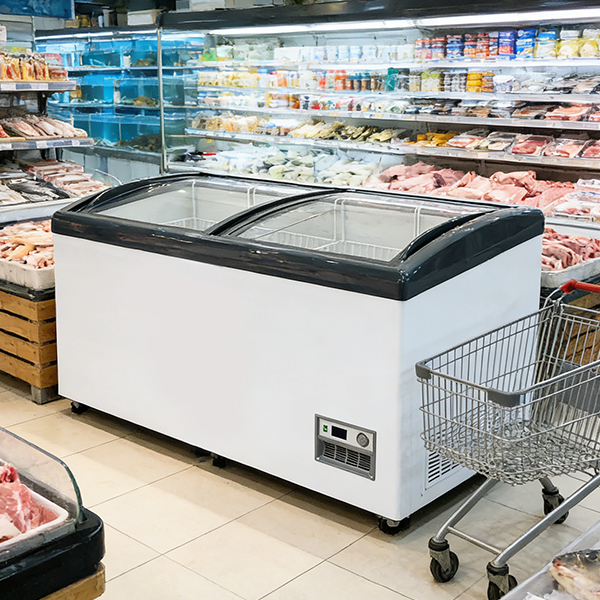This curved glass island freezer is designed to combine strong merchandising with efficient freezing performance. The curved glass structure enhances product visibility from multiple angles, making frozen products more attractive to customers. Compared to flat glass models, it offers a more premium look, helping improve store image. At the same time, the sliding lid reduces cold air loss, lowering energy consumption and operating costs. It is an ideal solution for supermarkets aiming to increase both display quality and sales conversion.