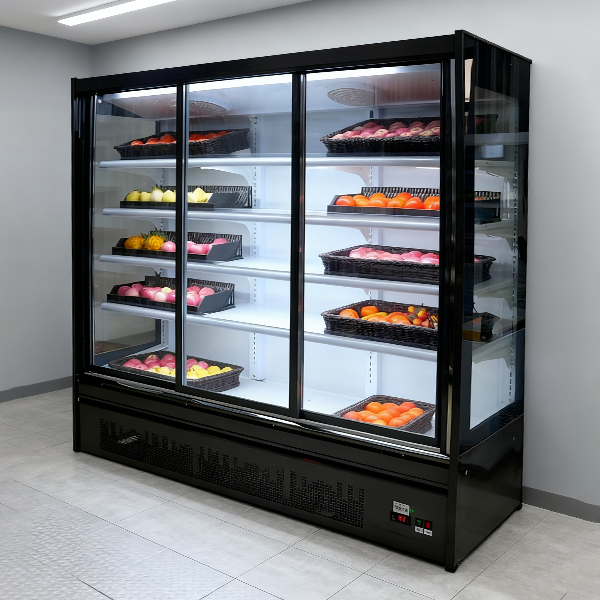 This bulk food merchandiser is built for commercial display performance and practical daily use. The sliding glass door structure not only improves the overall product presentation but also helps reduce energy consumption compared with open display cabinets. Its spacious shelf layout allows retailers to organize fruits, packaged foods, desserts, drinks, and other chilled products more efficiently. With uniform cooling, attractive lighting, and a modern appearance, this unit supports both product freshness and stronger in-store visual merchandising, making it a reliable choice for supermarkets, chain stores, and fresh food businesses.