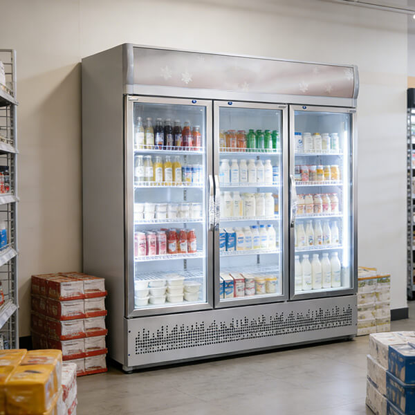 The HAIYI triple glass door beverage cooler is built for commercial display and high-capacity storage, featuring stable fan cooling, clear product visibility, and efficient merchandising for retail environments.