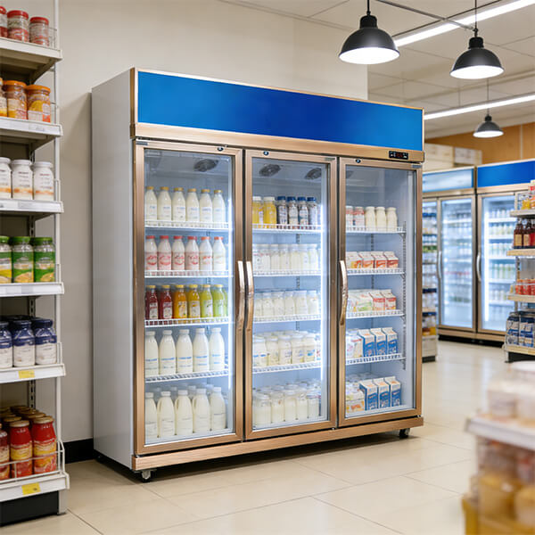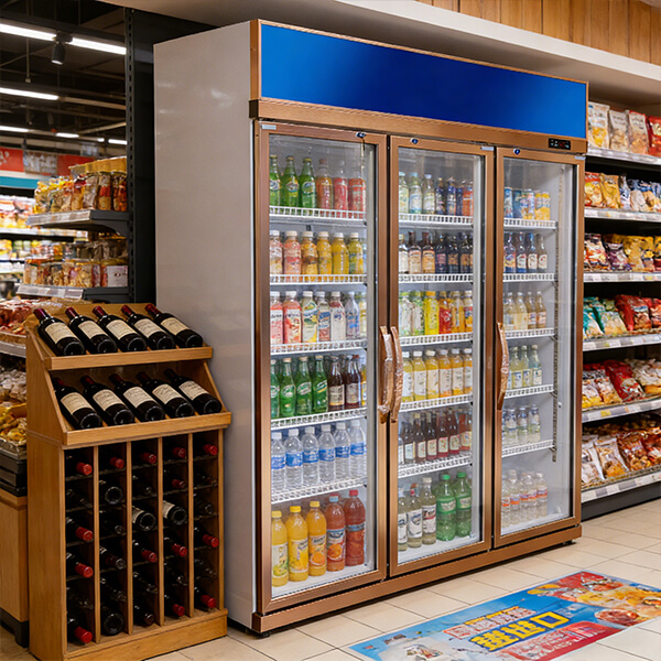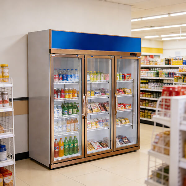 The HAIYI triple glass door beverage cooler is designed for high-capacity retail display, offering clear visibility, stable cooling performance, and efficient storage for supermarkets and commercial environments.